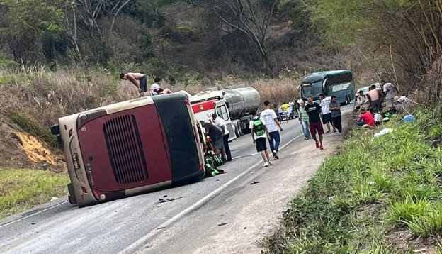 Um ônibus de turismo tombou na manhã do último domingo (13) na BR-418, em Carlos Chagas, resultando em várias pessoas feridas, algumas delas em estado grave. O veículo estava a caminho da Bahia e, de acordo com as primeiras informações, o acidente ocorreu antes de uma curva.