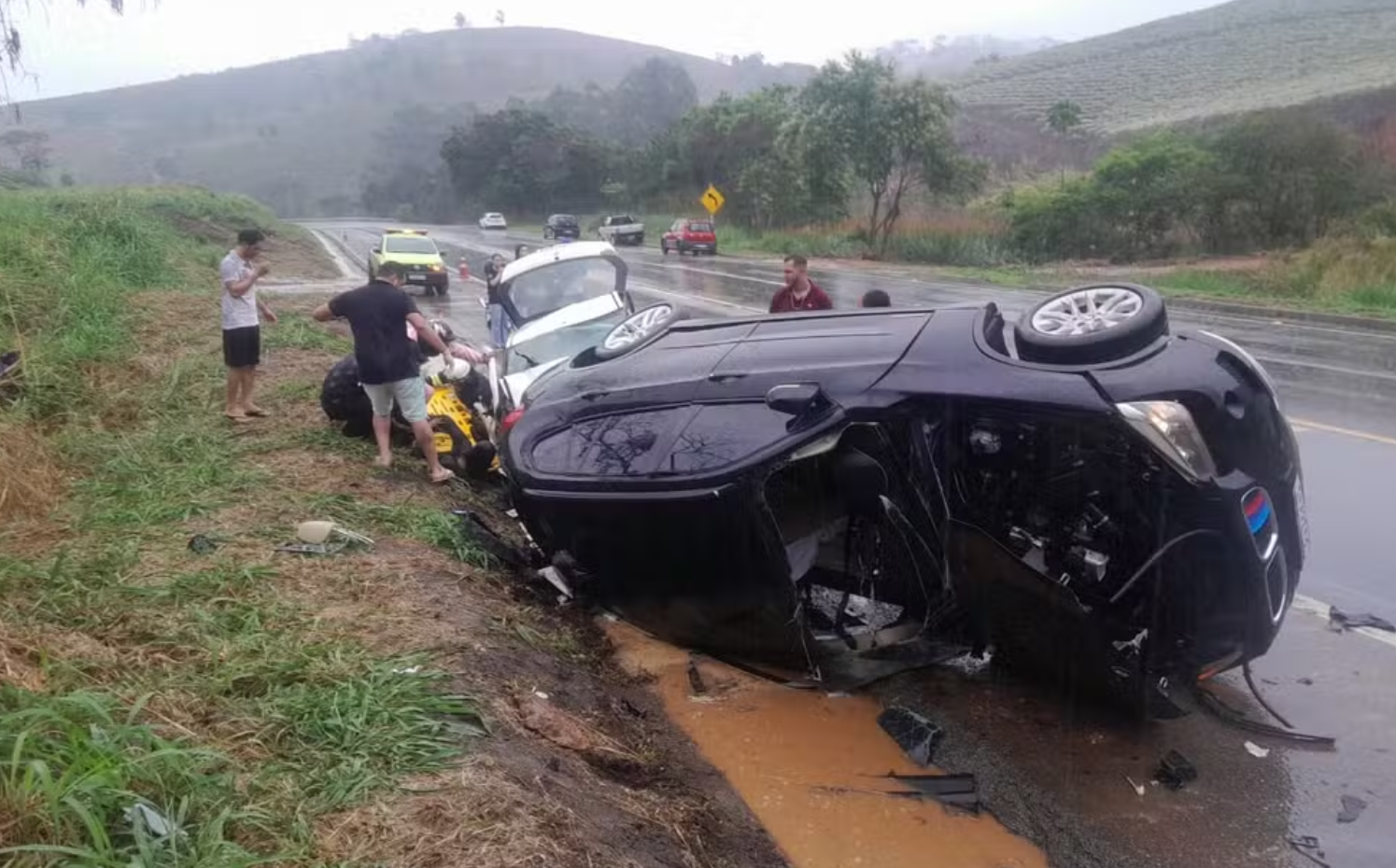 Chovia no momento do acidente. A batida frontal aconteceu no trecho entre Santa Bárbara do Leste e Dom Corrêa, que é distrito de Manhuaçu.
