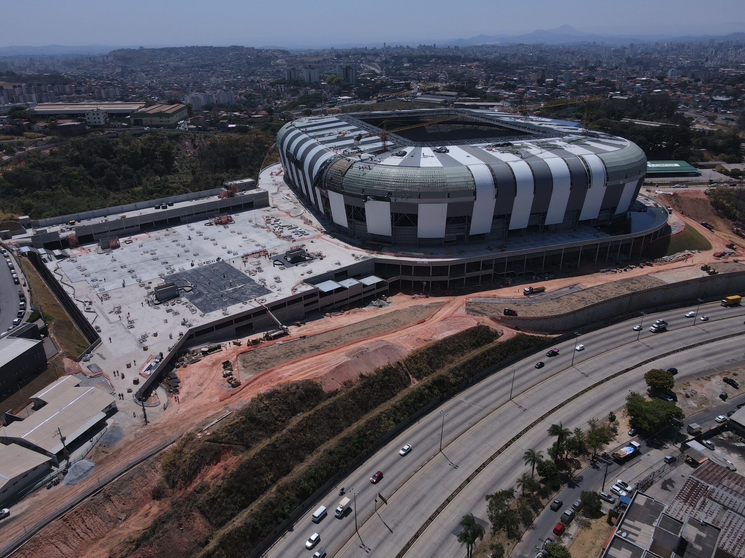 As construções do estádio já estão em estágio avançado, com mais de 90% pronta. Porém, os maiores problemas são em relação às obras viárias, no entorno da arena. “Dentro do estádio está tudo sendo feito, tudo em dia. Tem ainda que resolver algumas questões do entorno da Arena MRV, para preparar para a recepção dos torcedores. Eu acho que está caminhando bem, acho que até agosto nós teremos o Atlético mandando os jogos do campeonato brasileiro por lá, e se Deus quiser, das fases finais da Libertadores, Copa do Brasil”, finalizou Guimarães.