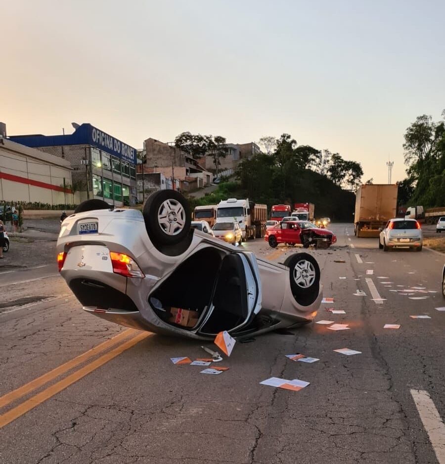 Um grave acidente entre dois veículos deixou o transito complicado no Km 627 da BR-040, altura de Conselheiro Lafaiete, na região Central de Minas, no começo da noite desta quinta-feira (17). Os veículos bateram de frente, e um deles capotou após o acidente.