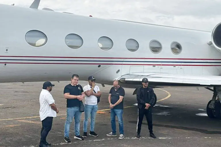 Todos que estavam na aeronave Gulfstream IV, vinda da Venezuela, foram detidos, incluindo o piloto, de acordo com a polícia judiciária local. Além do brasileiro, dois eram mexicanos, um era colombiano, e um, equatoriano.