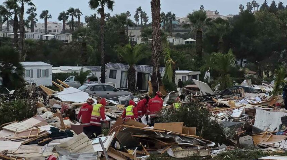 A vítima fatal é uma mulher britânica de 85 anos, que estava no Parque de Campismo de Albufeira no momento em que o vento extremo atingiu o local com força suficiente para levantar caravanas e arrancar estruturas.
