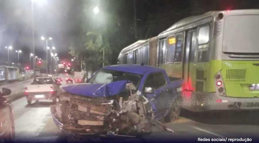 Na região da Pampulha, por volta das 5h, um veículo modelo Ram de cor azul bateu em um poste e acabou atravessado na pista da Avenida Antônio Carlos, sentido Centro de BH, altura do Shopping Pampulha Mall.
