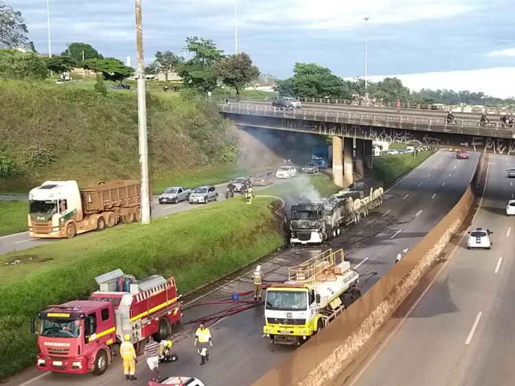 Dois caminhões do Corpo de Bombeiros e um da Via 040 – concessionária que administra a rodovia – estiveram no local para atender a ocorrência.