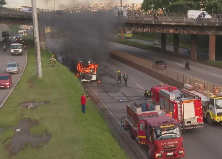 O trânsito foi completamente interditado e o tráfego, desviado para a marginal.