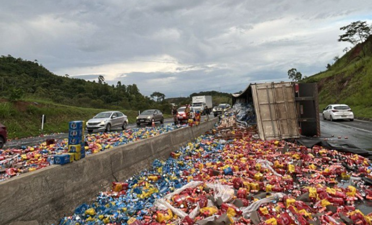 Uma carreta carregada de cerveja tombou na tarde desta quinta-feira (9), na BR-040, perto do Expominas, em Juiz de Fora, na Zona da Mata. O acidente deixou quatro pessoas feridas, e durante os trabalhos de resgate, populares aproveitaram para saquear a carga de cerveja, prejudicando o atendimento das vítimas.