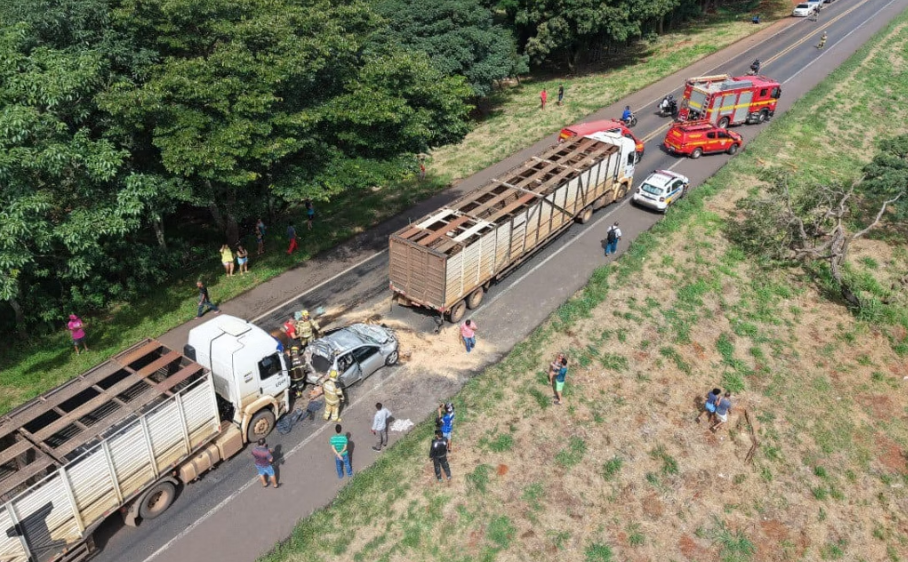Um carro foi prensado entre duas carretas em engavetamento, na BR-365, em Uberlândia, no Triângulo Mineiro, na tarde de sábado (1 de fevereiro). De acordo com o Corpo de Bombeiros, o motorista da carreta que seguia atrás, não conseguiu desacelerar a tempo, resultando na colisão com o veículo de passeio à sua frente, desencadeando o engavetamento com o outro veículo de carga.