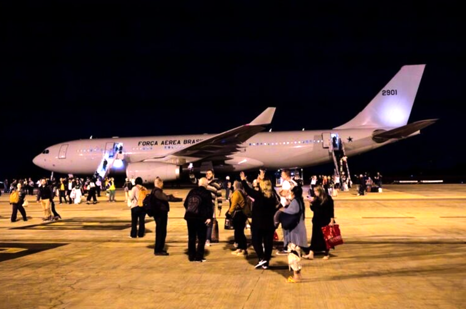 A primeira escala da operação pousou no Brasil em 6 de outubro. O grupo com 229 passageiros e três animais domésticos foi recebido pelo presidente Luiz Inácio Lula da Silva, que reforçou que o País seguirá com os esforços para trazer todos os brasileiros e familiares que necessitarem.