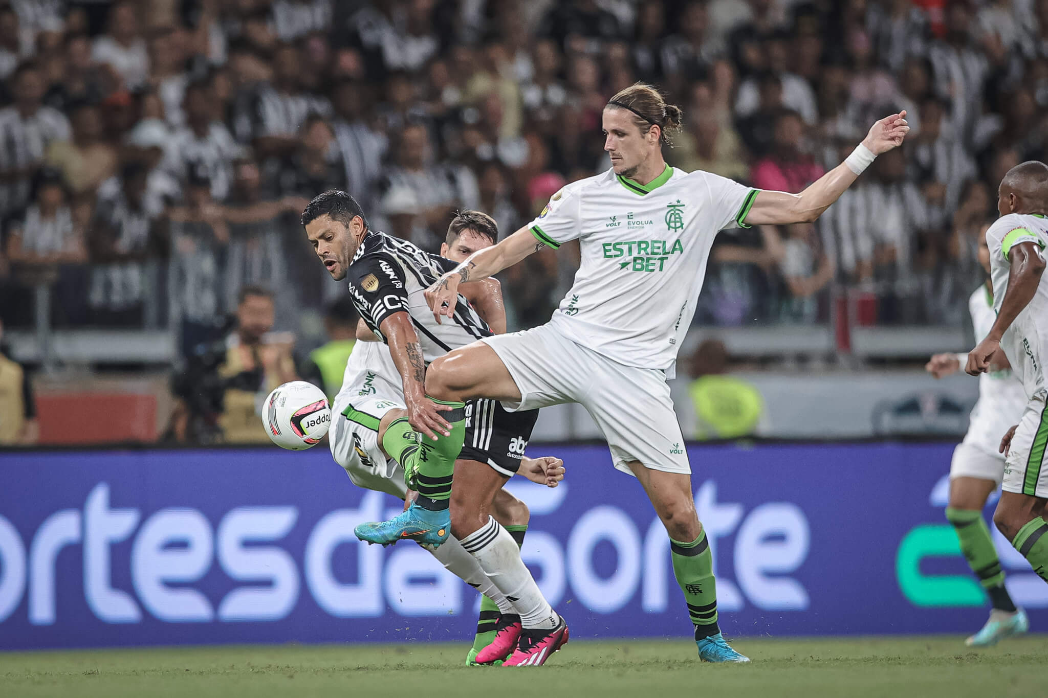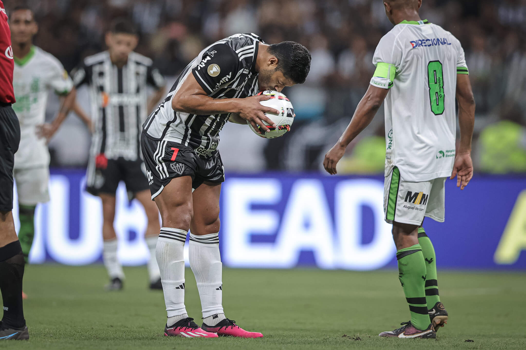 O Galo, por sua vez, aproveitava os espaços dados pelo América e tentava matar a decisão no contra-ataque. E foi exatamente o que aconteceu. Aos 26 minutos, Zaracho puxou contragolpe pela direita, viu Hulk livre pelo meio e rolou para o artilheiro, que só teve o trabalho de empurrar para dentro do gol e ampliar o placar.