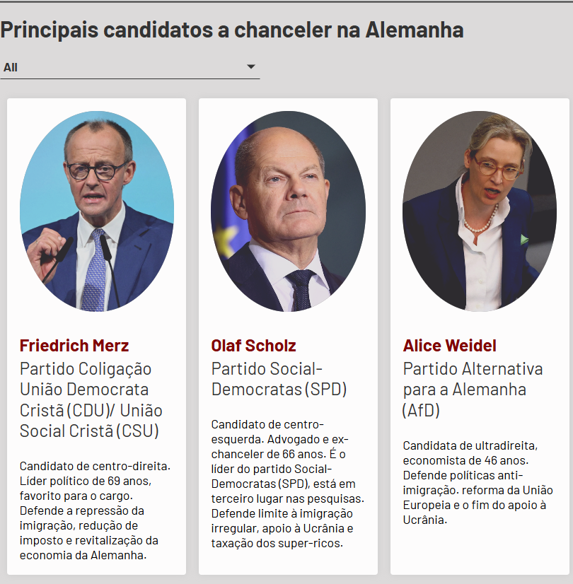 Neste domingo, 23 de fevereiro, os eleitores alemães vão às urnas para participar das eleições antecipadas do parlamento da Alemanha, o Bundestag. A votação ocorre após a coalizão governamental do país ter entrado em colapso devido a divergências sobre a economia, o que culminou em um voto de desconfiança em novembro de 2024.