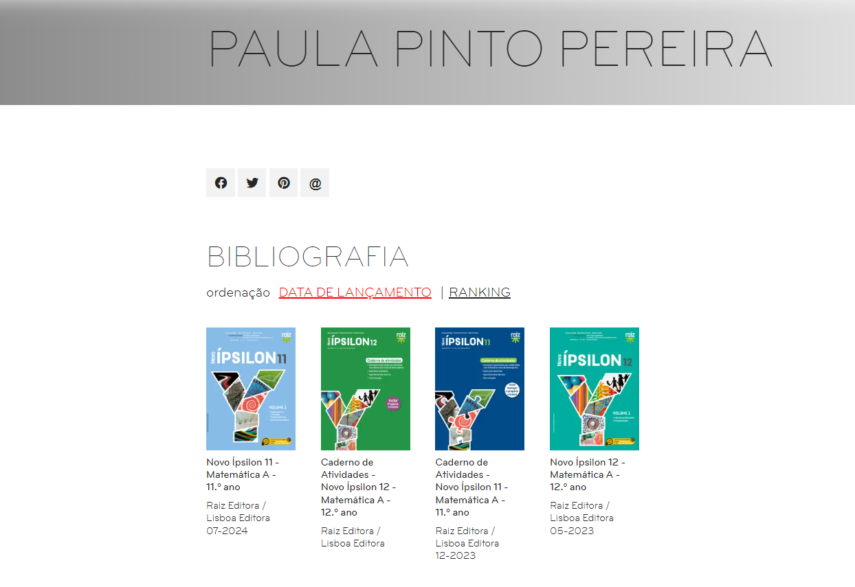 A docente também é co-autora de vários manuais escolares da disciplina ao longo dos anos – tanto para alunos como para professores – alguns desses manuais são certificados pela Sociedade Portuguesa de Matemática.