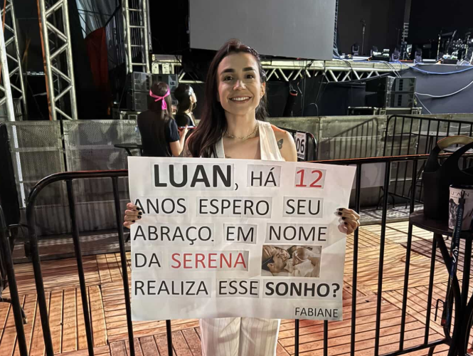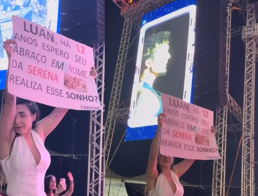 “Sou fã do Luan Santana há 12 anos e nunca tinha conseguido abraçar ele, mas sempre tive muita fé de que um dia chegaria a minha vez. Na semana que antecedeu o show, comecei a pensar em uma forma de tentar realizar esse sonho e foi então que tive a ideia do cartaz”, contou Fabiane em entrevista exclusiva à SNC TV News.
