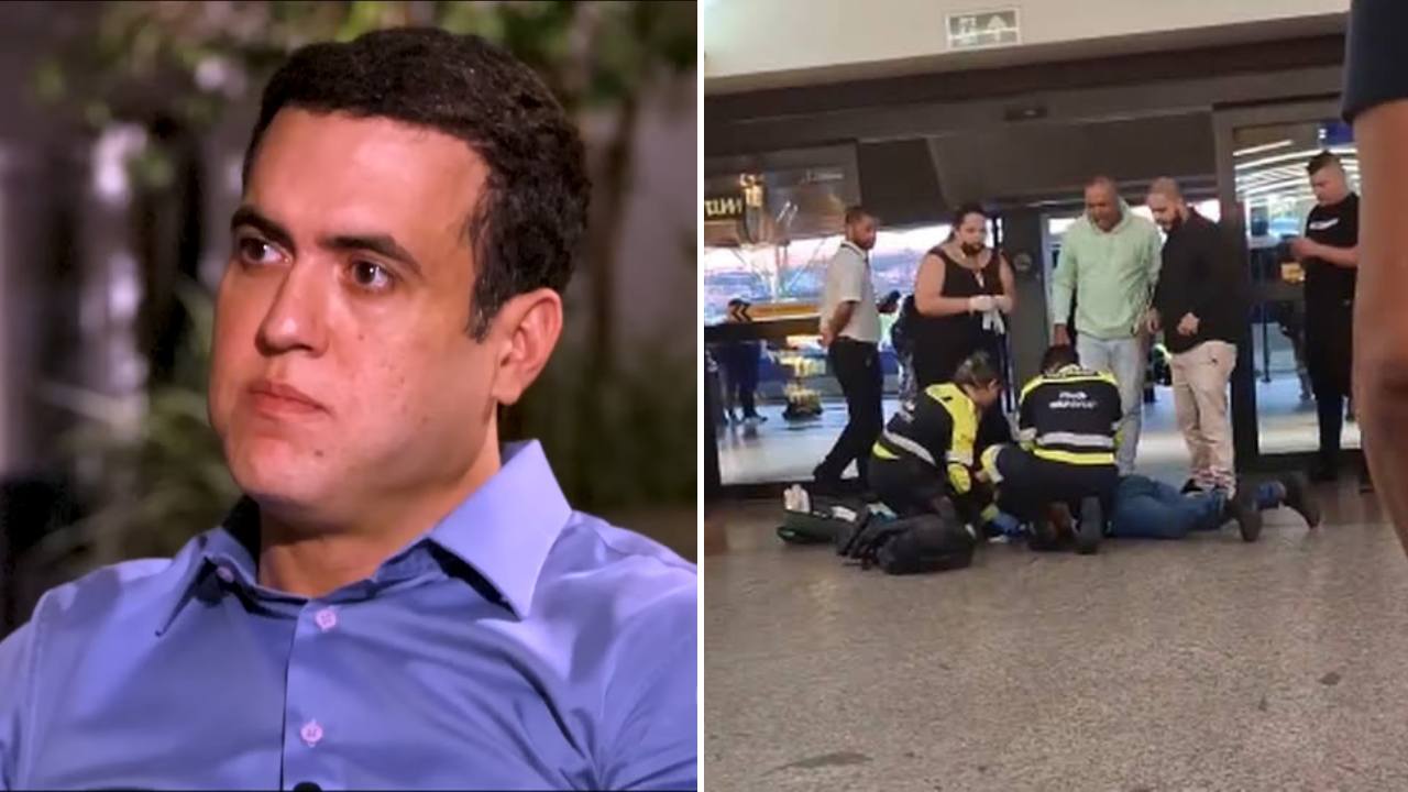 Vinicius estava voltando de Goiás para São Paulo, acompanhado da namorada. Ele foi surpreendido quando pisou do lado de fora do aeroporto.