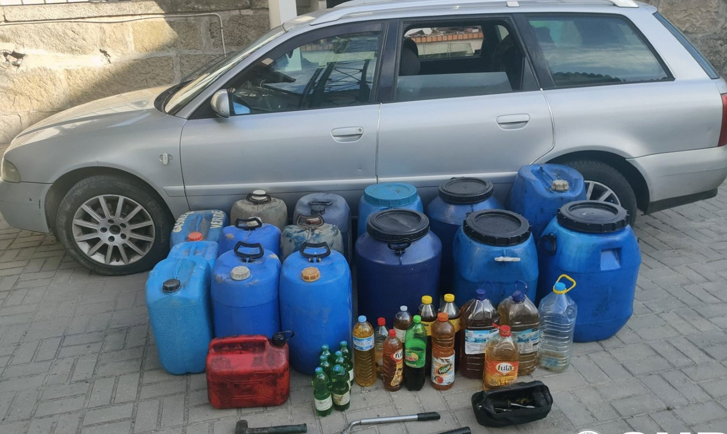 No decorrer das diligências policiais foi efetuada uma busca ao veículo, onde se constatou que os suspeitos transportavam diversos recipientes com óleo alimentar usado, sem conseguir justificar a sua proveniência.