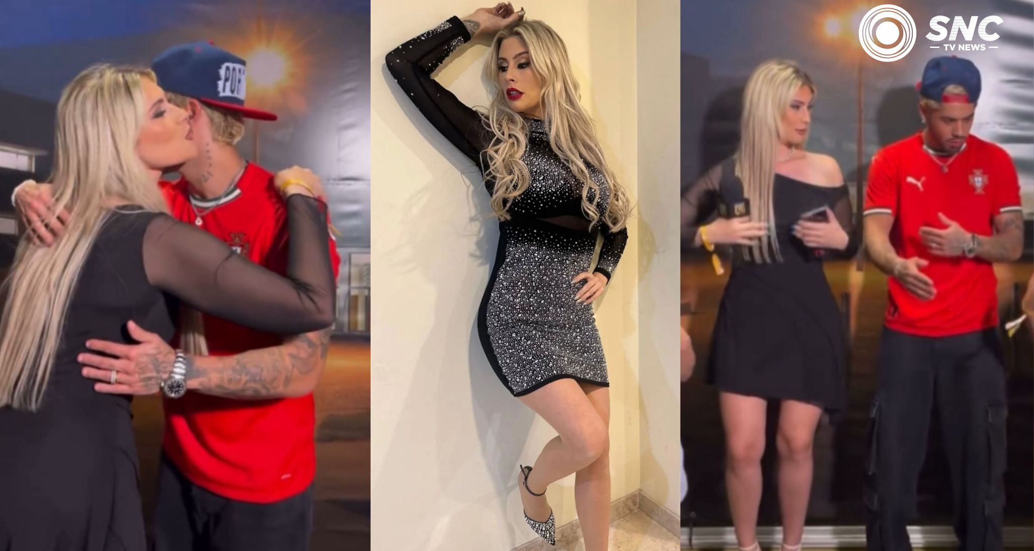 Em vídeos que circularam nas redes, o cantor aparece em clima leve no camarim, cercado por influenciadoras portuguesas.
