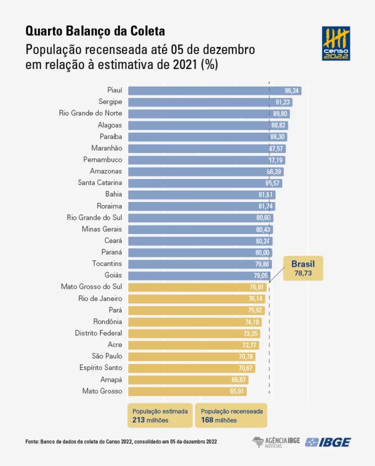 Segundo o IBGE, desde o início da operação, em 1º de agosto, até 5 de dezembro, foram recenseadas 168.018.345 pessoas, em 59.192.875 domicílios no país.