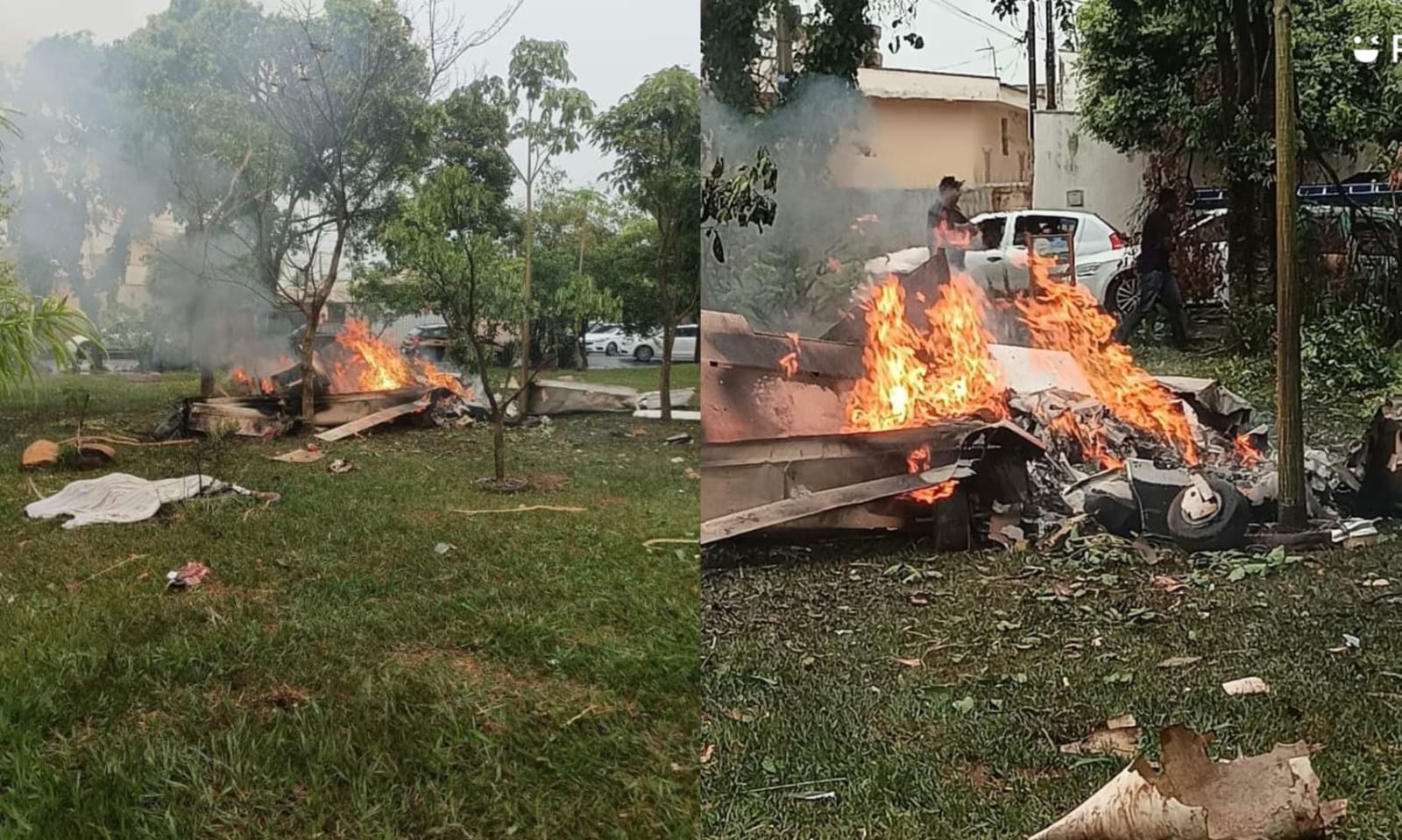 Os bombeiros foram acionados às 9h05 para atender a ocorrência da queda de um avião de pequeno porte. A aeronave aterrissou na praça das Jabuticabeiras, no bairro Jardim Universitário, um local cercado por casas.