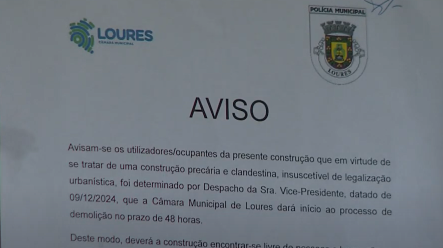 Em comunicado, a Câmara Municipal de Loures afirmou que nessas “construções precárias” se detectou “risco para a saúde pública” em situação de “insalubridade”. Sem encontrar uma alternativa para quem ali vive, a Câmara notificou os moradores que as construções “serão demolidas” e que estes devem “procurar alternativas” por si próprios, tendo sido “encaminhados para os serviços de ação social da câmara”.