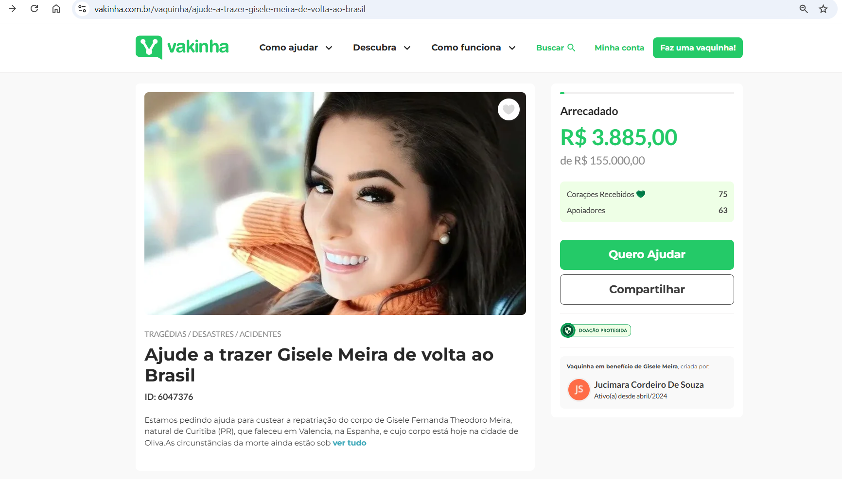 Campanha arrecada recursos para trazer o corpo ao Brasil