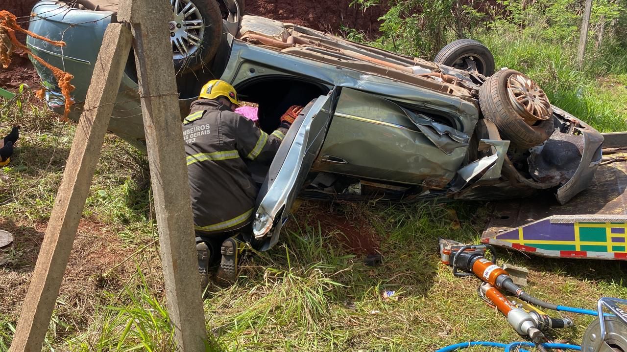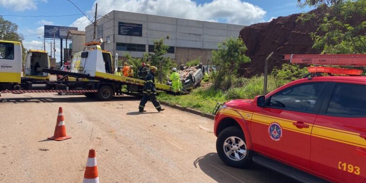 Um motorista que seguia na BR 040 acabou dormindo no volante do carro causando capotamento,