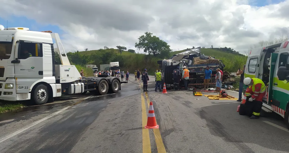 Paulo Vitor Oliveira, era motorista de uma das carretas e morreu na hora. Três pessoas que estavam no outro veículo ficaram feridas e foram levadas para o hospital da cidade.