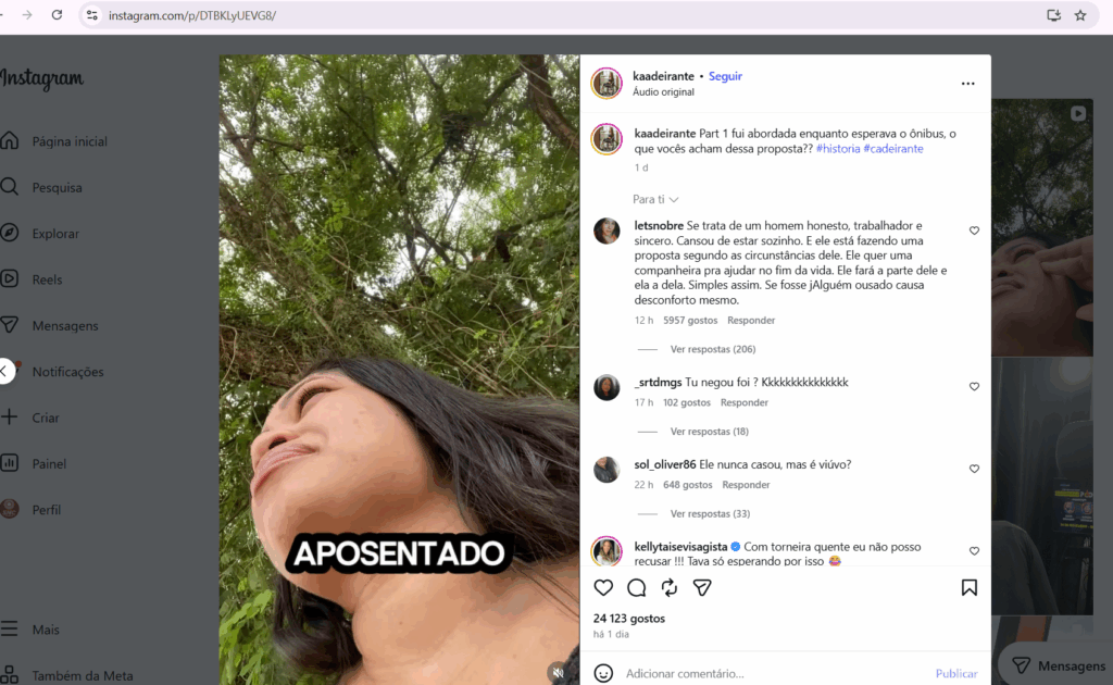 De forma direta, ele perguntou se Karolina era casada e qual era sua idade, antes de fazer um pedido de casamento surpreendente. Segundo ela, o idoso afirmou que tinha tudo na vida, mas não era feliz, e disse: