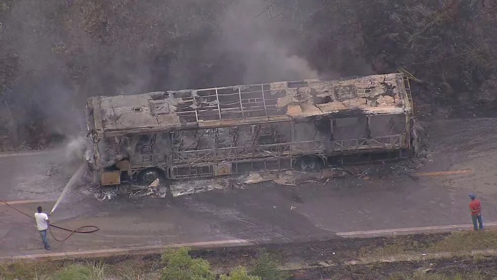 Um ônibus da linha 4810, que faz o itinerário Caeté/São Gabriel, pegou fogo na MG-435, na cidade de Caeté, na Região Metropolitana de Belo Horizonte. O incêndio aconteceu na manhã desta quarta-feira (29).