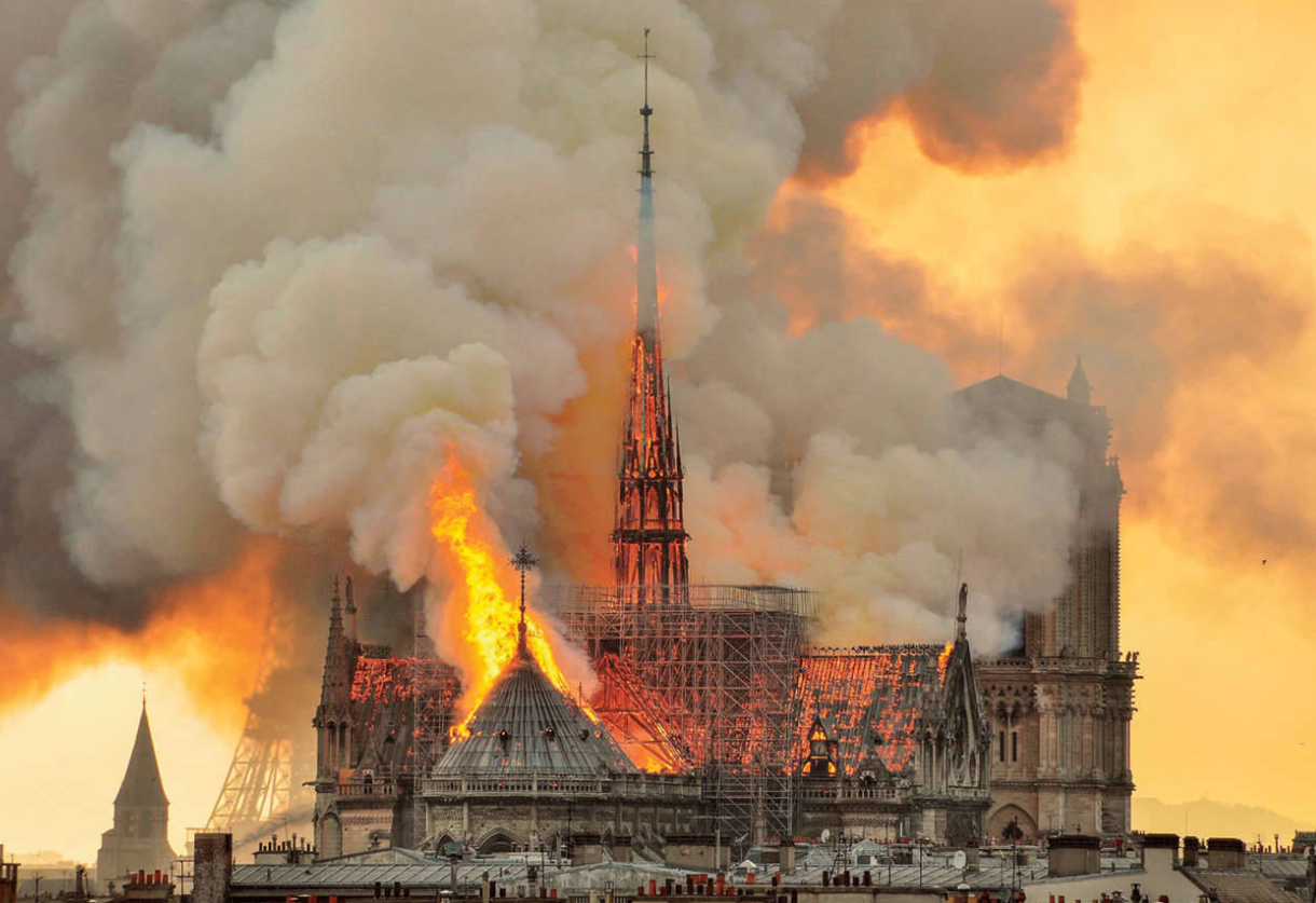 No dia 15 de Abril de 2019, o telhado de Notre-Dame incendiou-se. Após 15 horas em chamas, a torre desmoronou-se, o telhado ficou em grande parte destruído e a parte superior das suas paredes ficou gravemente danificada.