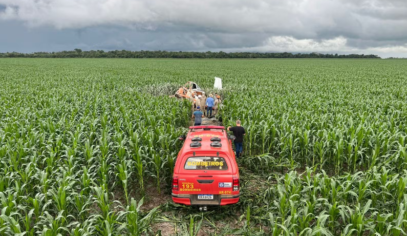 Um helicóptero foi acionado para iniciar as buscar e encontrou a aeronave que Higor pilotava caída em uma lavoura de milho, na fazenda vizinha a que ele trabalhava.