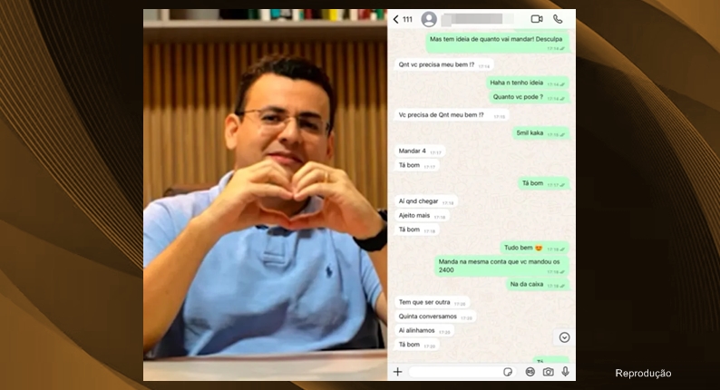 “Ah, sim. Mas você tá com ele ainda”, questiona o prefeito. “Não estamos mais!”, responde a suposta vítima. Em outra troca de mensagens, Douglas Lima fala sobre o corpo da mulher: “Delícia demais você, muito gostosa. E eu também, louco demais pra te ver”, diz o prefeito. Como resposta, a amante fala apenas que o “dinheiro caiu”.