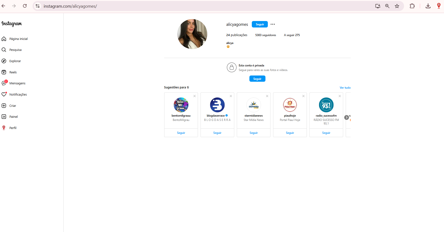 Atualmente, seu perfil conta com mais de 5 mil seguidores e 24 publicações. Na biografia da rede social, ela optou por não dar detalhes sobre sua vida pessoal, usando apenas um emoji de sorriso. Estima-se que o casal esteja junto há cerca de seis meses.