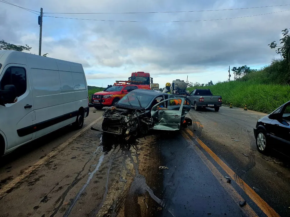 De acordo com a Polícia Rodoviária Federal (PRF), dois carros de passeio e uma carreta, bateram no km 441 no sentido Vitória (ES).