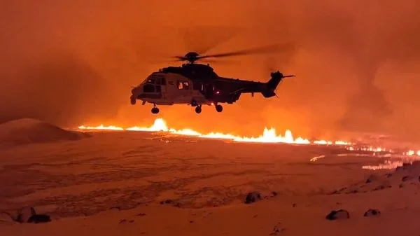 A erupção começou ao norte da cidade pesqueira de Grindavik, mas ainda não estava claro exatamente de onde a lava emergia ou em que direção fluía, disse a emissora RUV.