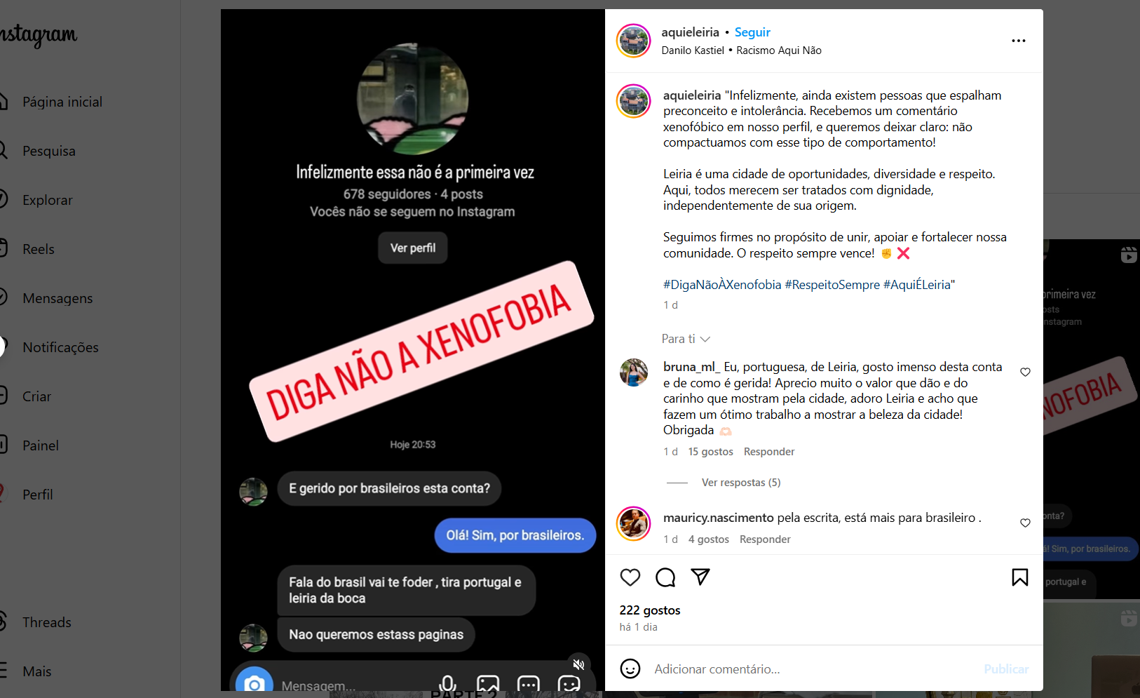 Na última ofensa xenofóbica recebida, um indivíduo entrou em contato com a página @AquiÉLeiria, questionando se a página era gerida por brasileiros. Rafael, como responsável pela plataforma, respondeu afirmativamente. Logo depois, o xenofóbico disparou palavras de baixo calão contra os brasileiros e, de forma agressiva, pediu para que a página “tirasse Portugal e Leiria da boca”, afirmando: “não queremos estas páginas”.